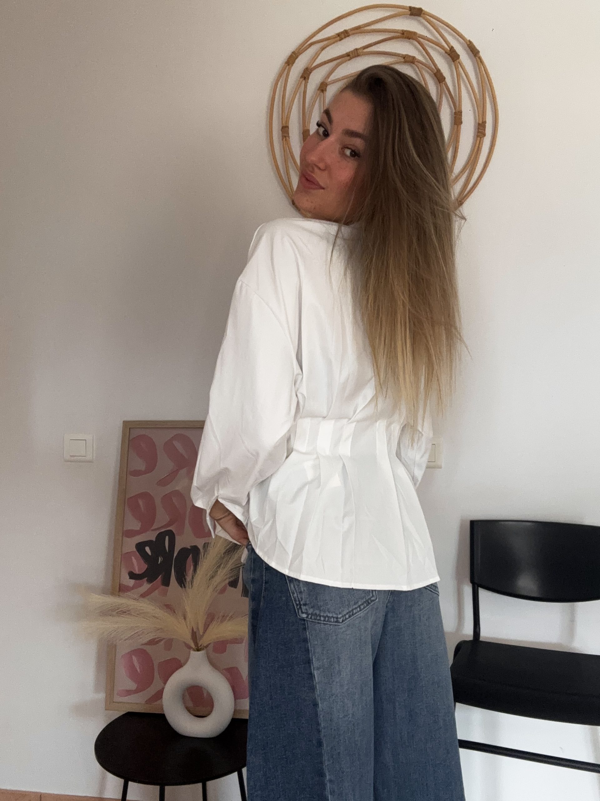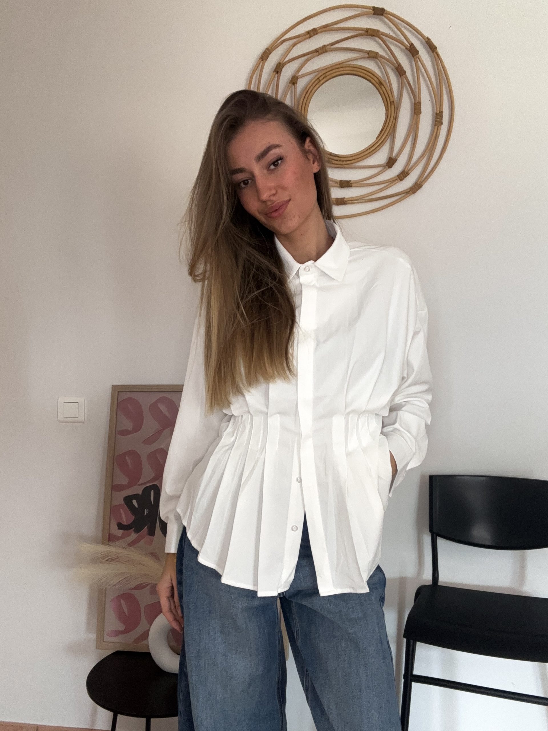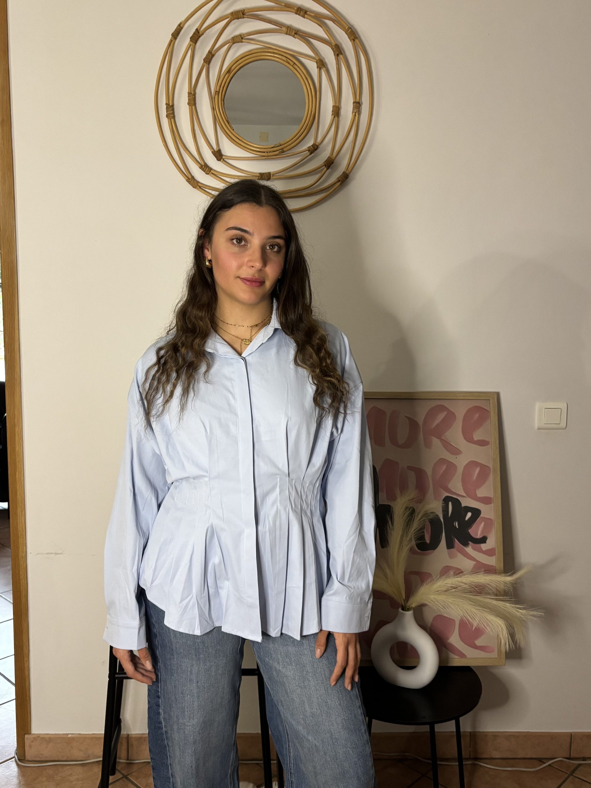Classique et intemporelle, cette chemise blanche ou bleu clair est un indispensable du dressing. Sa coupe resserrée au niveau de la taille sublime la silhouette en apportant une touche féminine et structurée