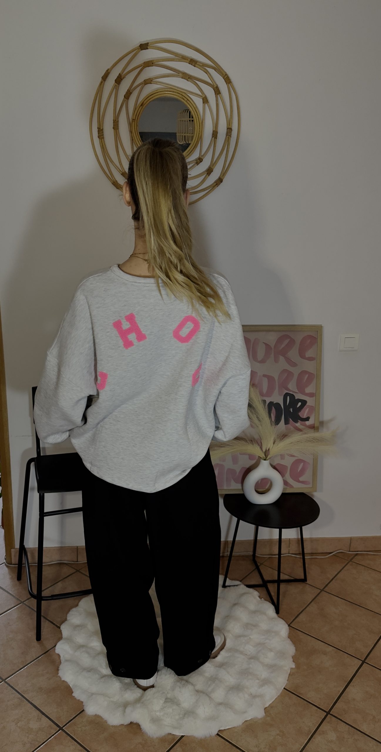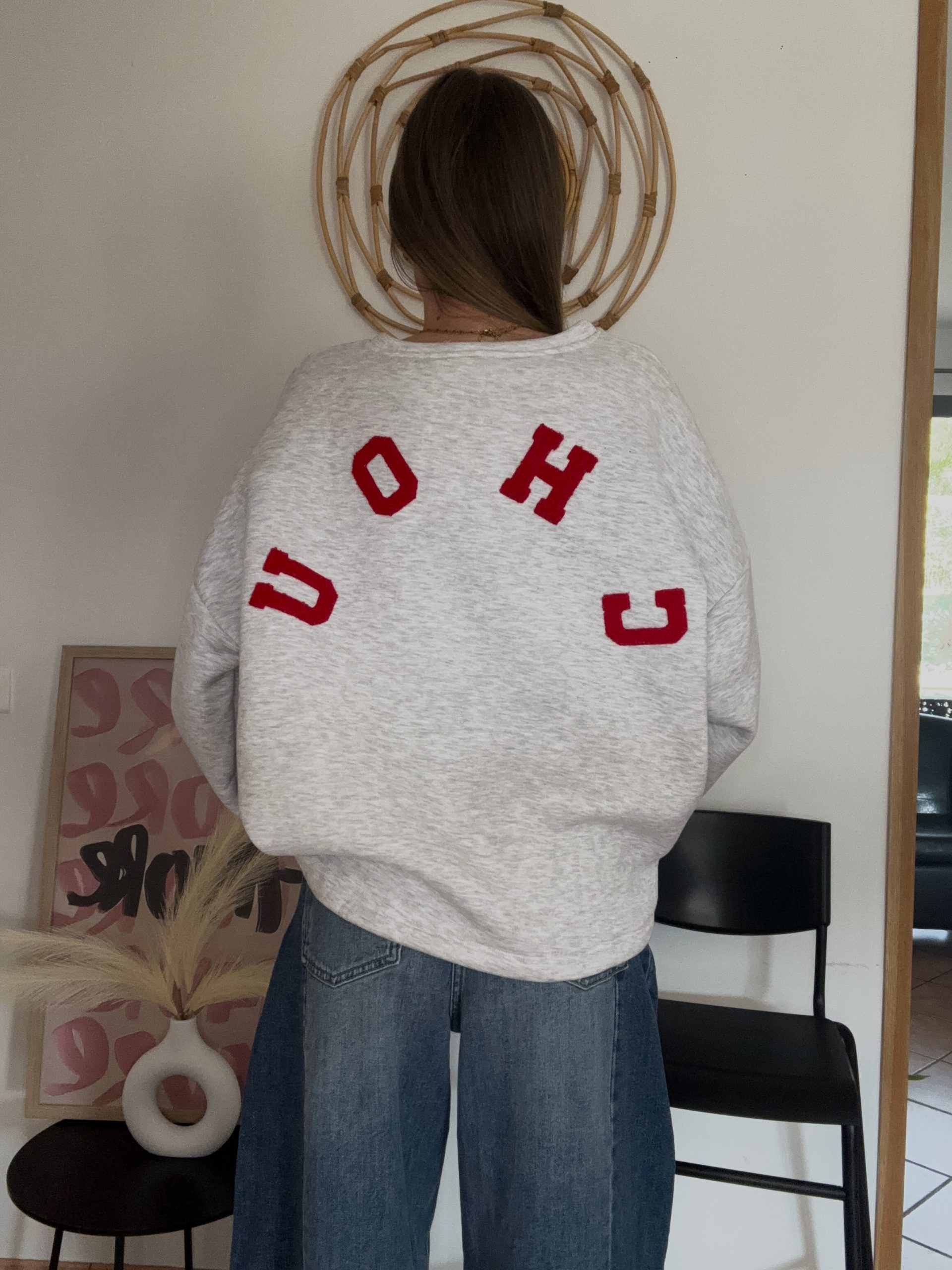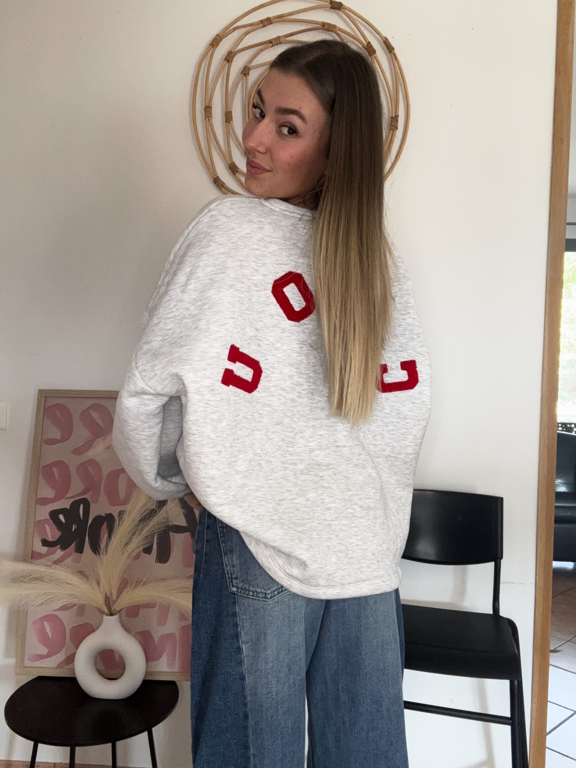 Doux, confortable et plein de caractère, ce pull gris clair en coton est la pièce parfaite pour allier style et confort. Son détail qui fait toute la différence ? L’inscription “CHOU” dans le dos, disponible en rouge ou en rose, pour une touche fun et originale.