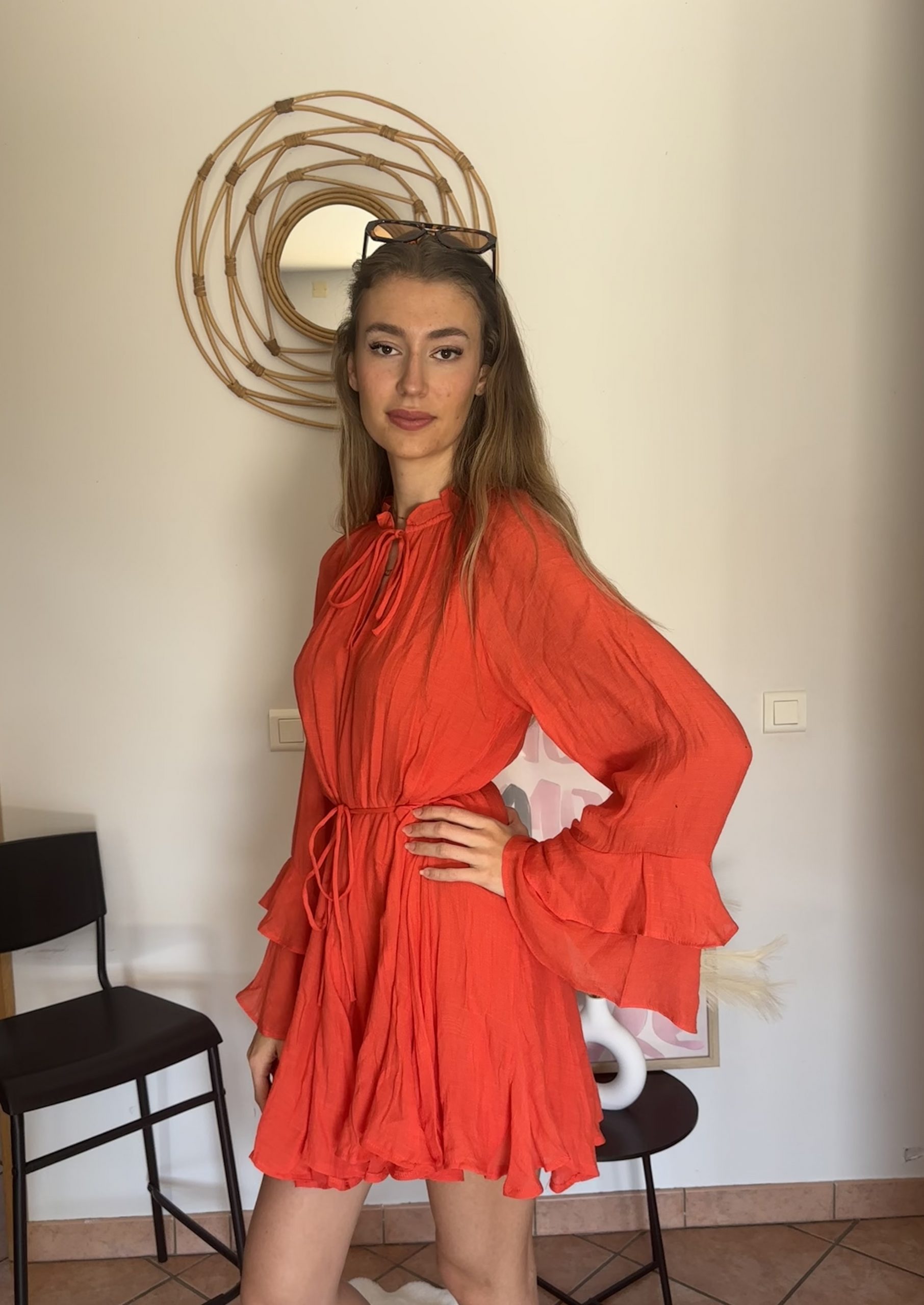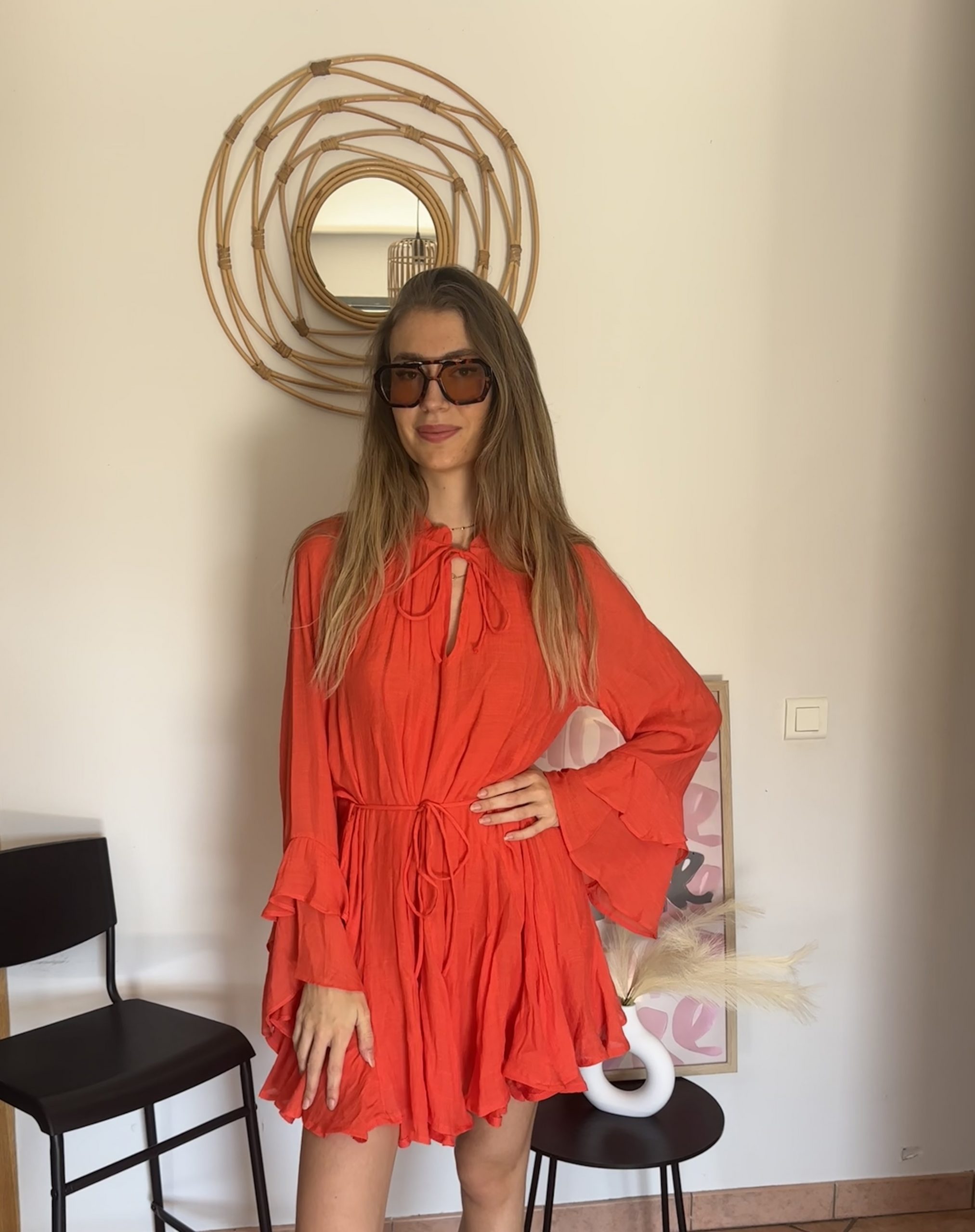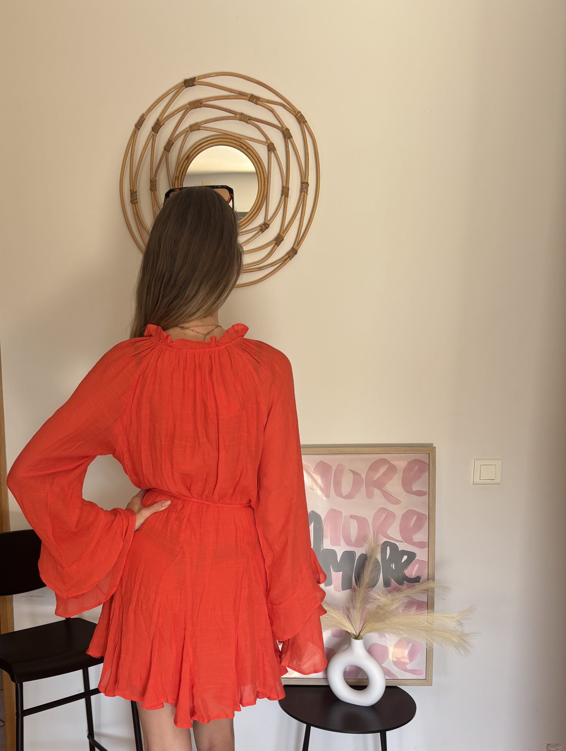 Laissez-vous séduire par cette robe corail lumineuse, parfaite pour sublimer votre bronzage et apporter une touche de fraîcheur à votre dressing estival.
