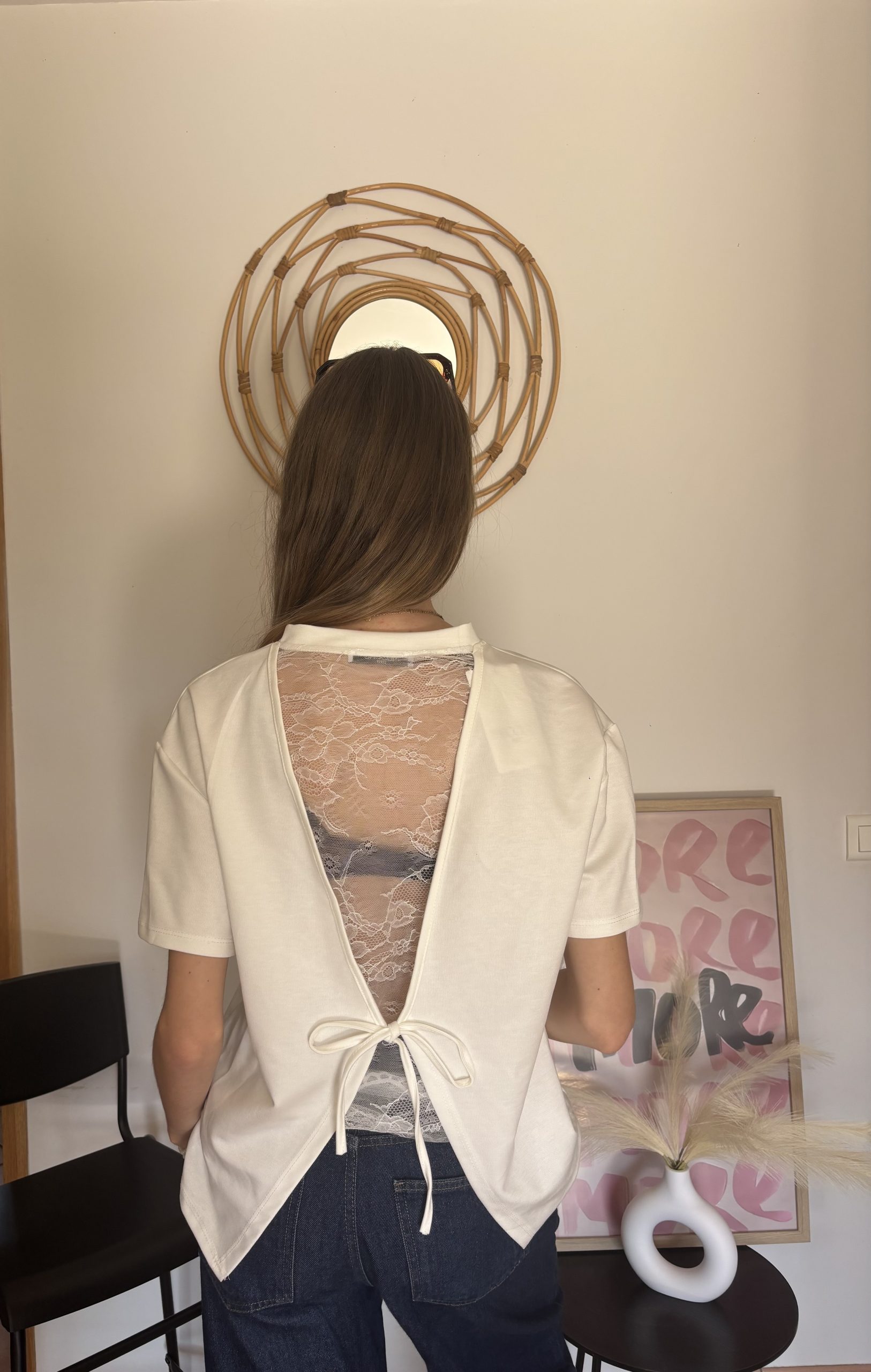 Alliez simplicité et féminité avec ce t-shirt revisité, sublimé par un dos en dentelle délicate et un détail lacé qui attire tous les regards.