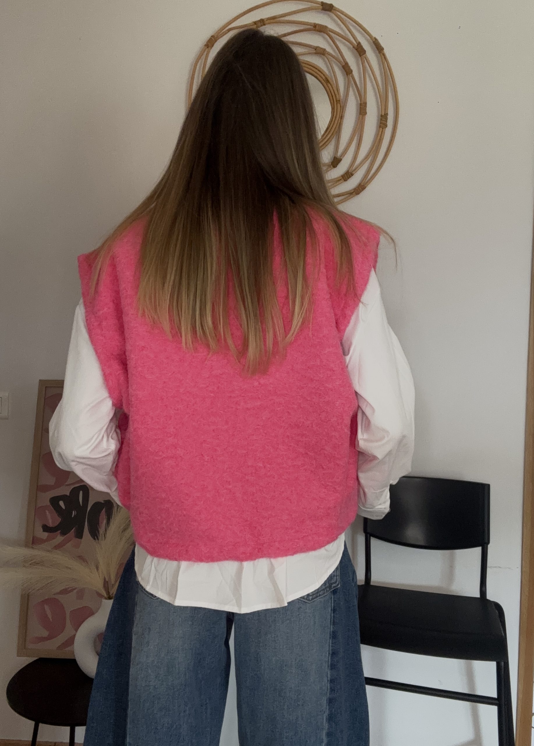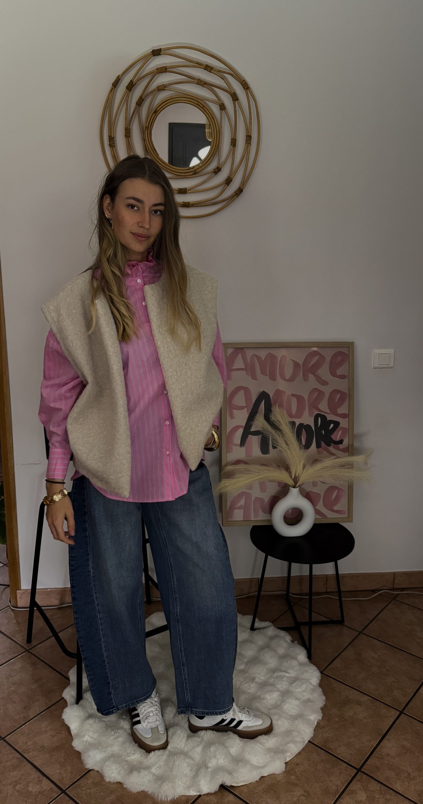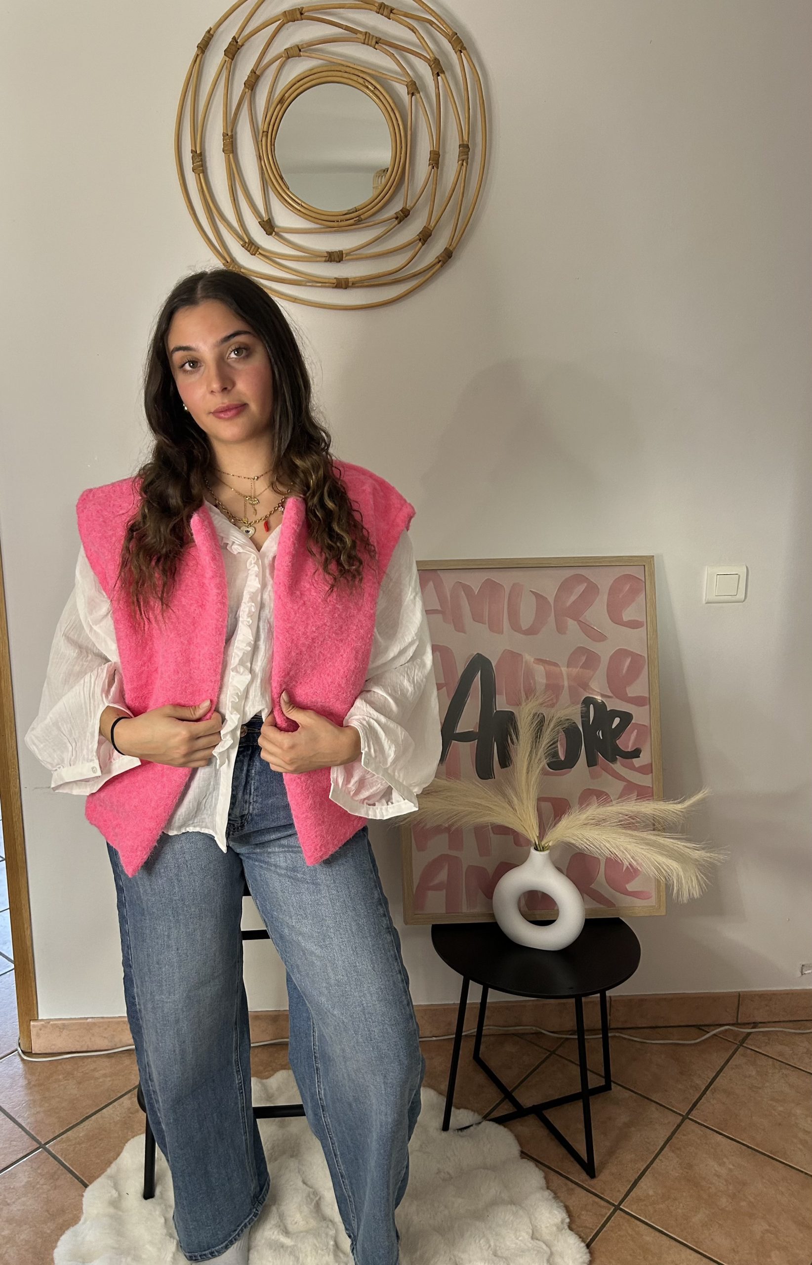 Le gilet ” Doudou” est la pièce idéale pour apporter une touche tendance et cosy à vos tenues. Sans manches, il se superpose facilement sur une chemise, un pull ou un ensemble jean pour un look moderne et stylé.