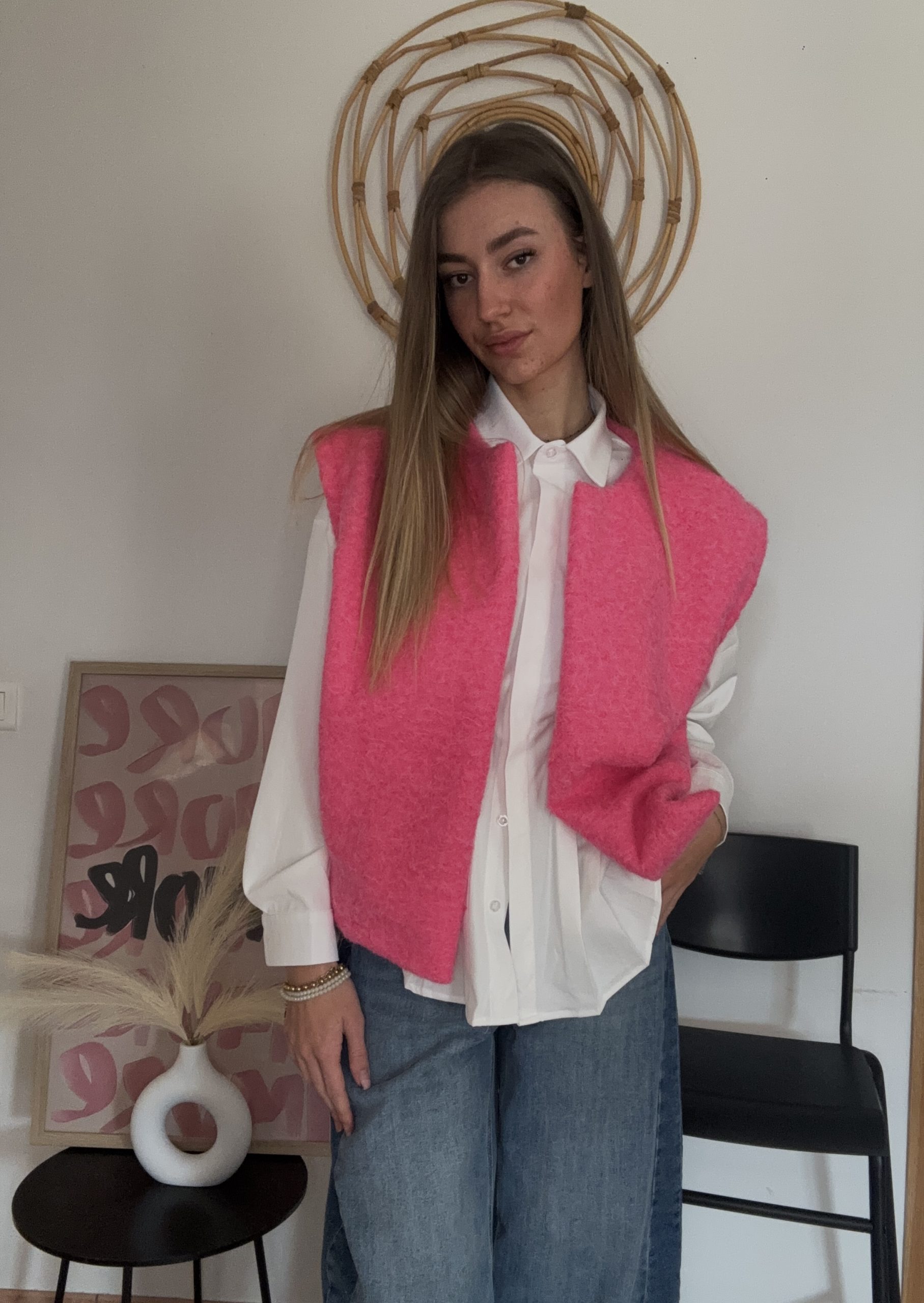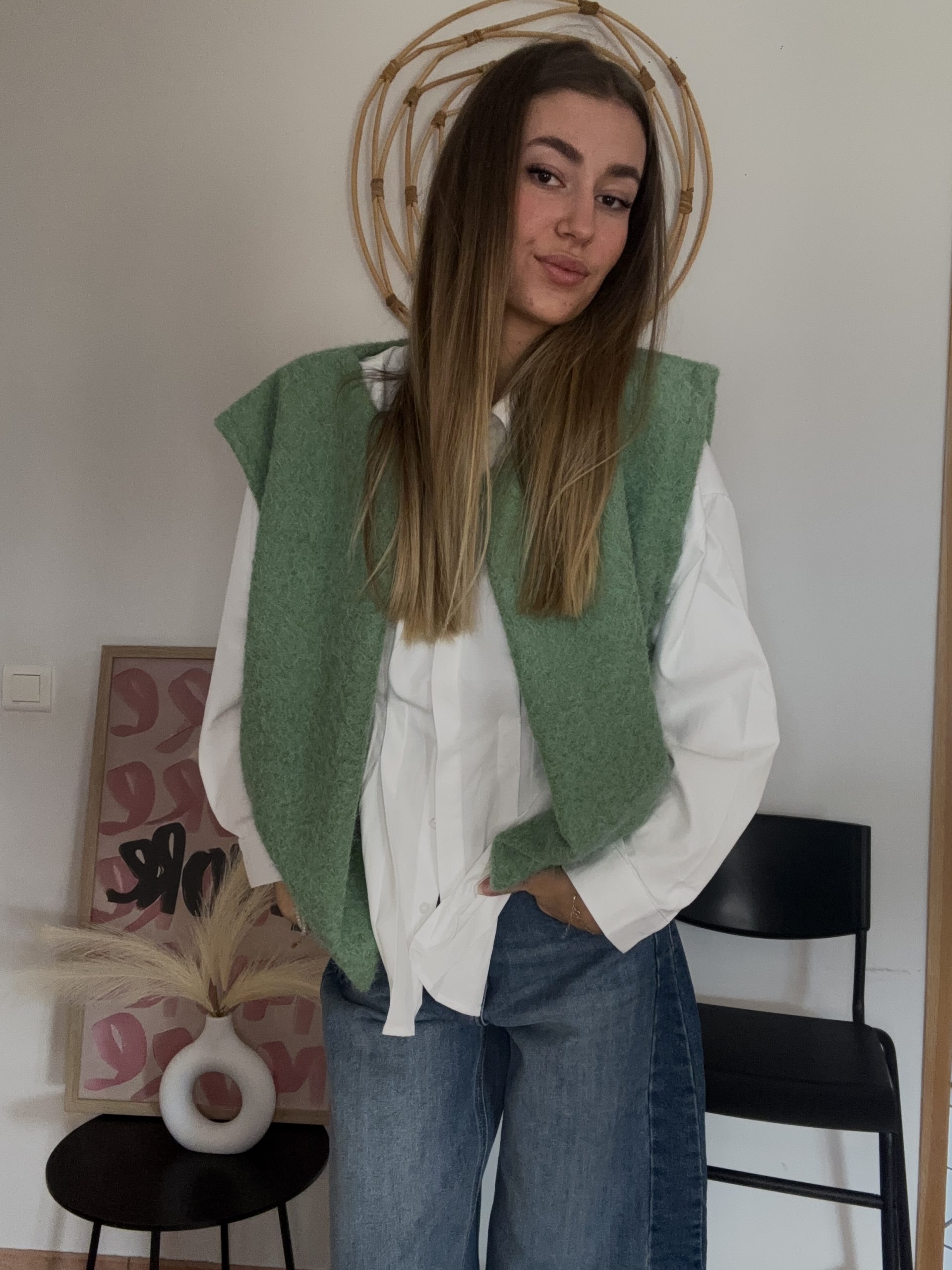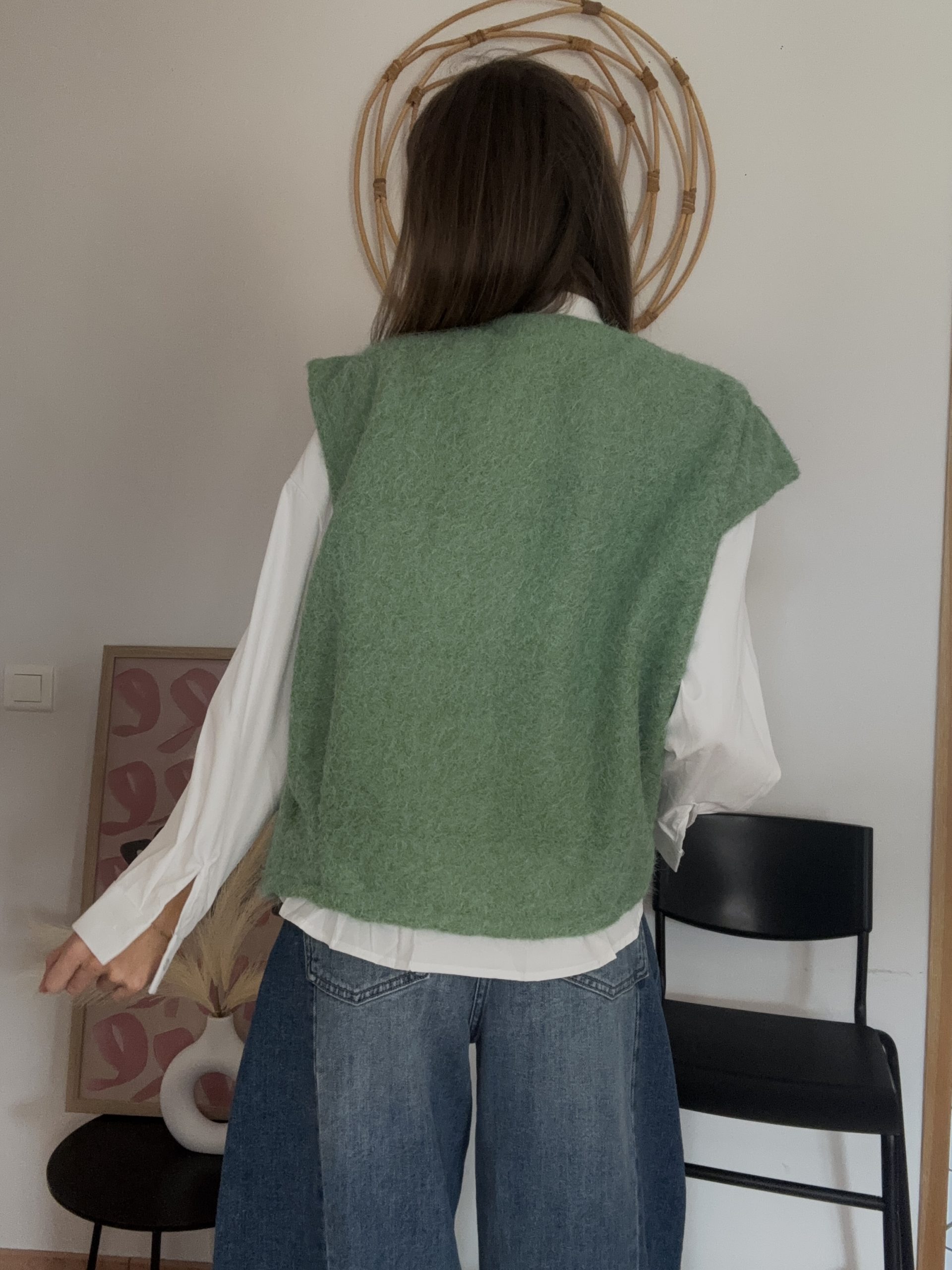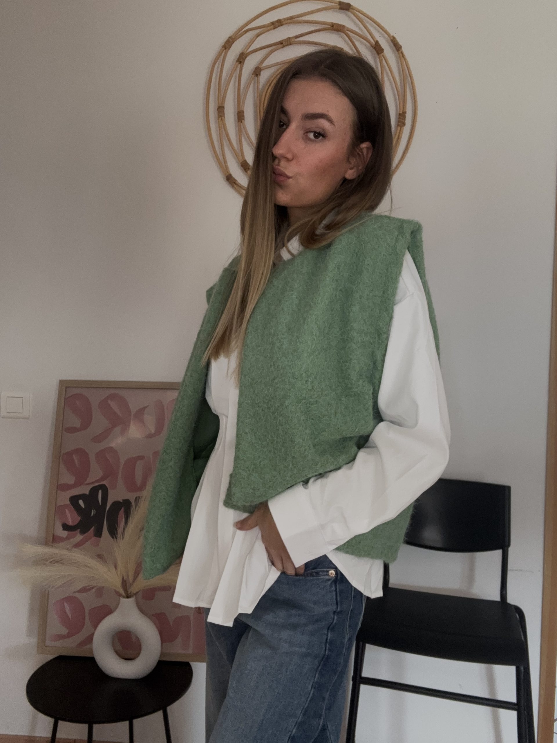 Le gilet ” Doudou” est la pièce idéale pour apporter une touche tendance et cosy à vos tenues. Sans manches, il se superpose facilement sur une chemise, un pull ou un ensemble jean pour un look moderne et stylé.